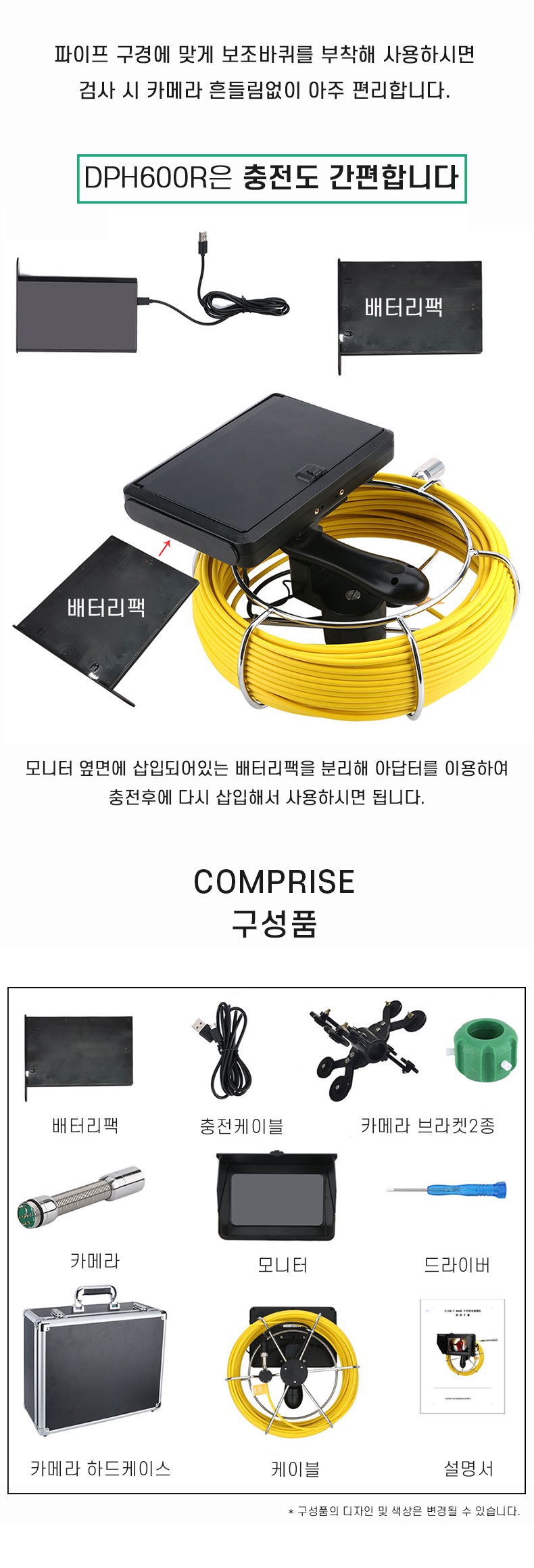 [산업용 DP600R 내시경 카메라] 국내당일발송ㅣ기본 30MㅣGPS장착형ㅣ하수구 배수구 점검카메라 파이프,하수구, 건설현장등 내시경카메라장비 거리측정가능 산업체, 설비업자 ,하수구 내시경장비