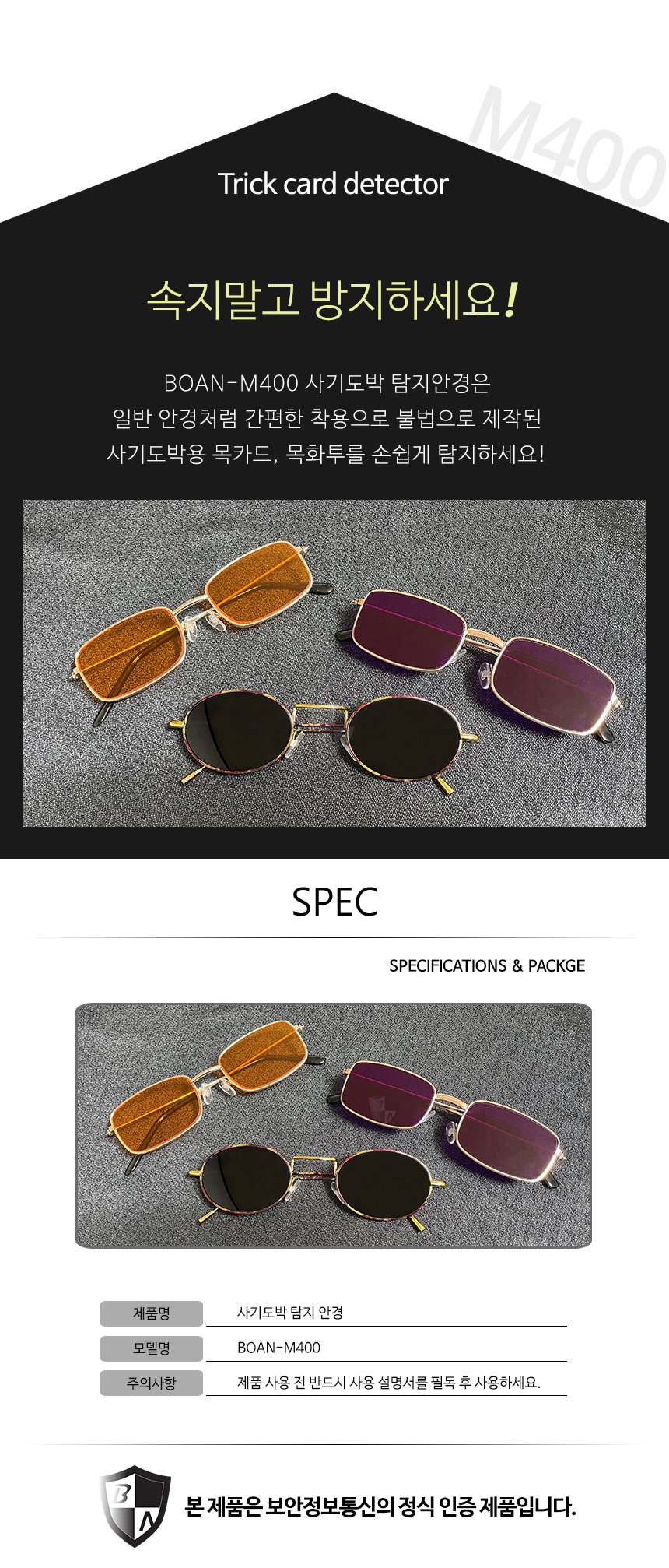 BOAN-M400 사기도박검별 렌즈카드 화투 검사안경
