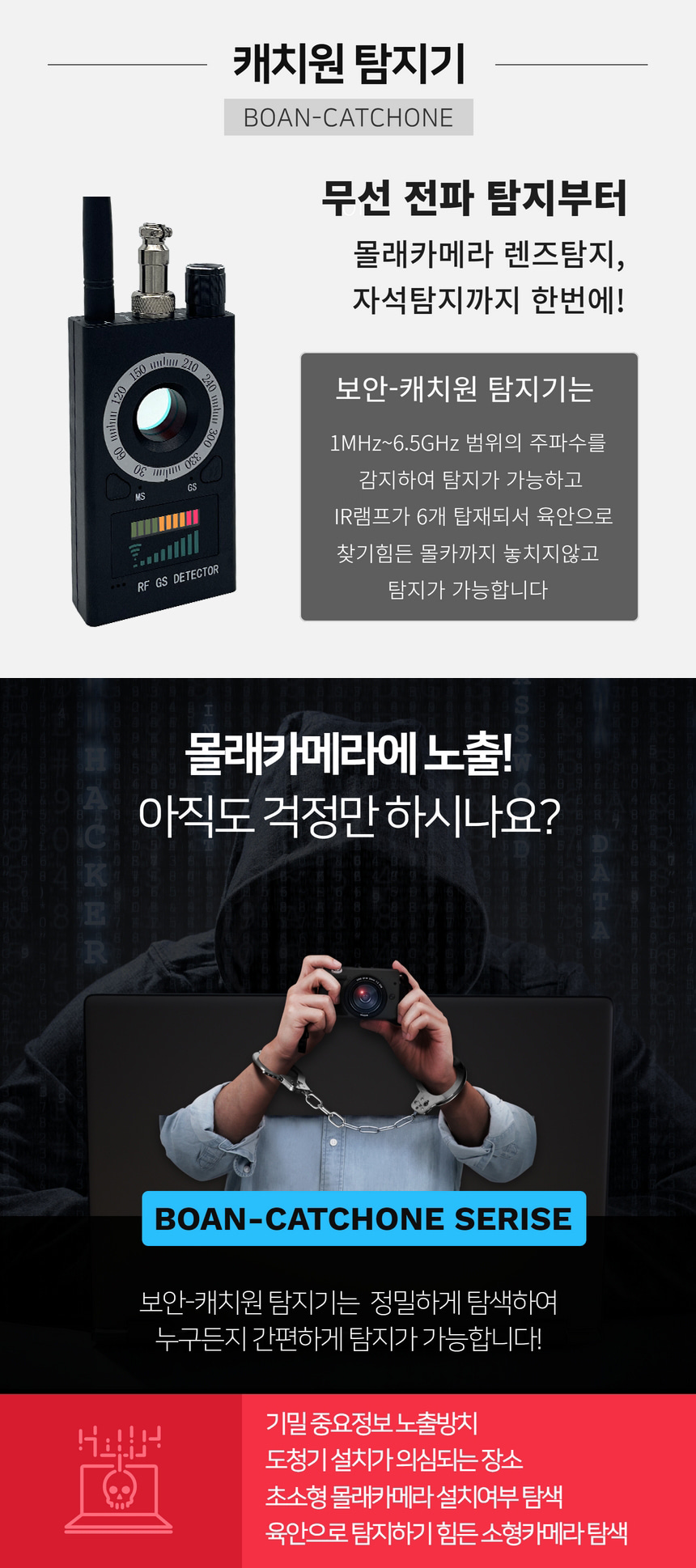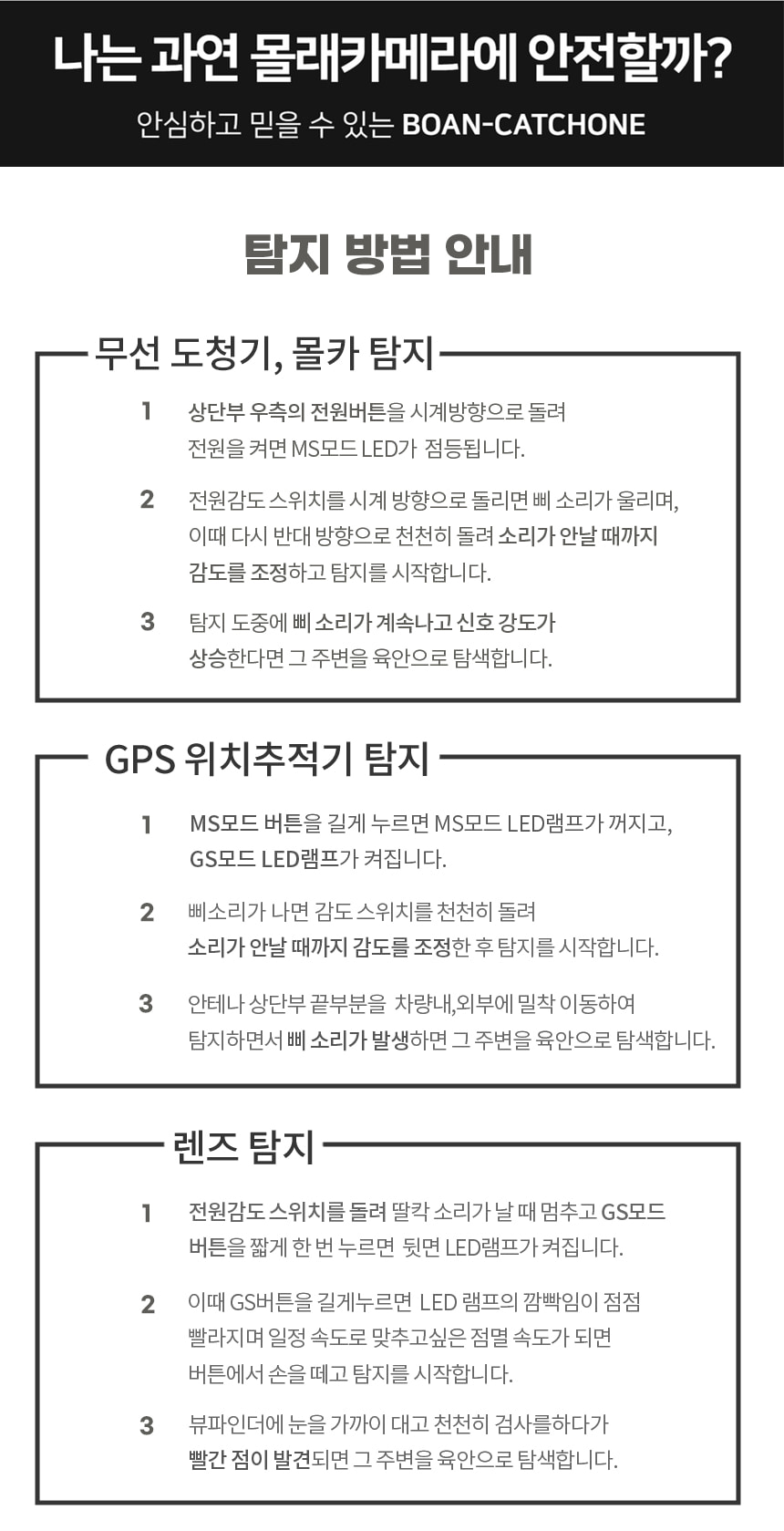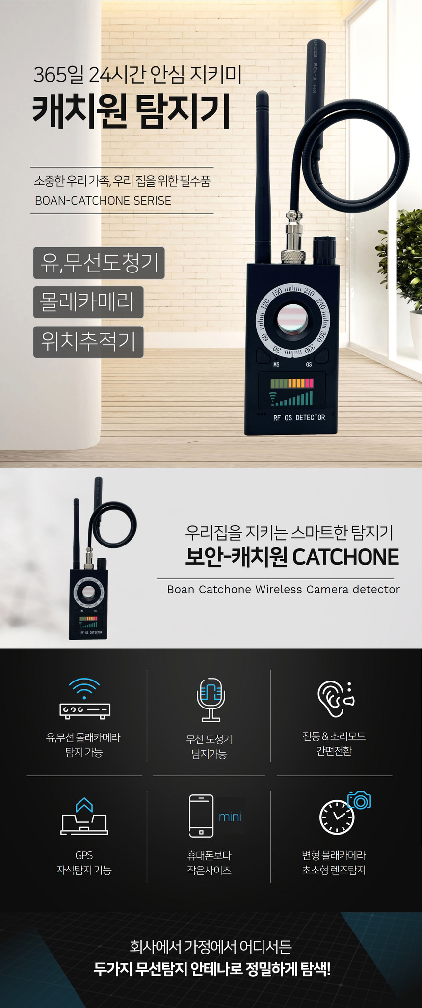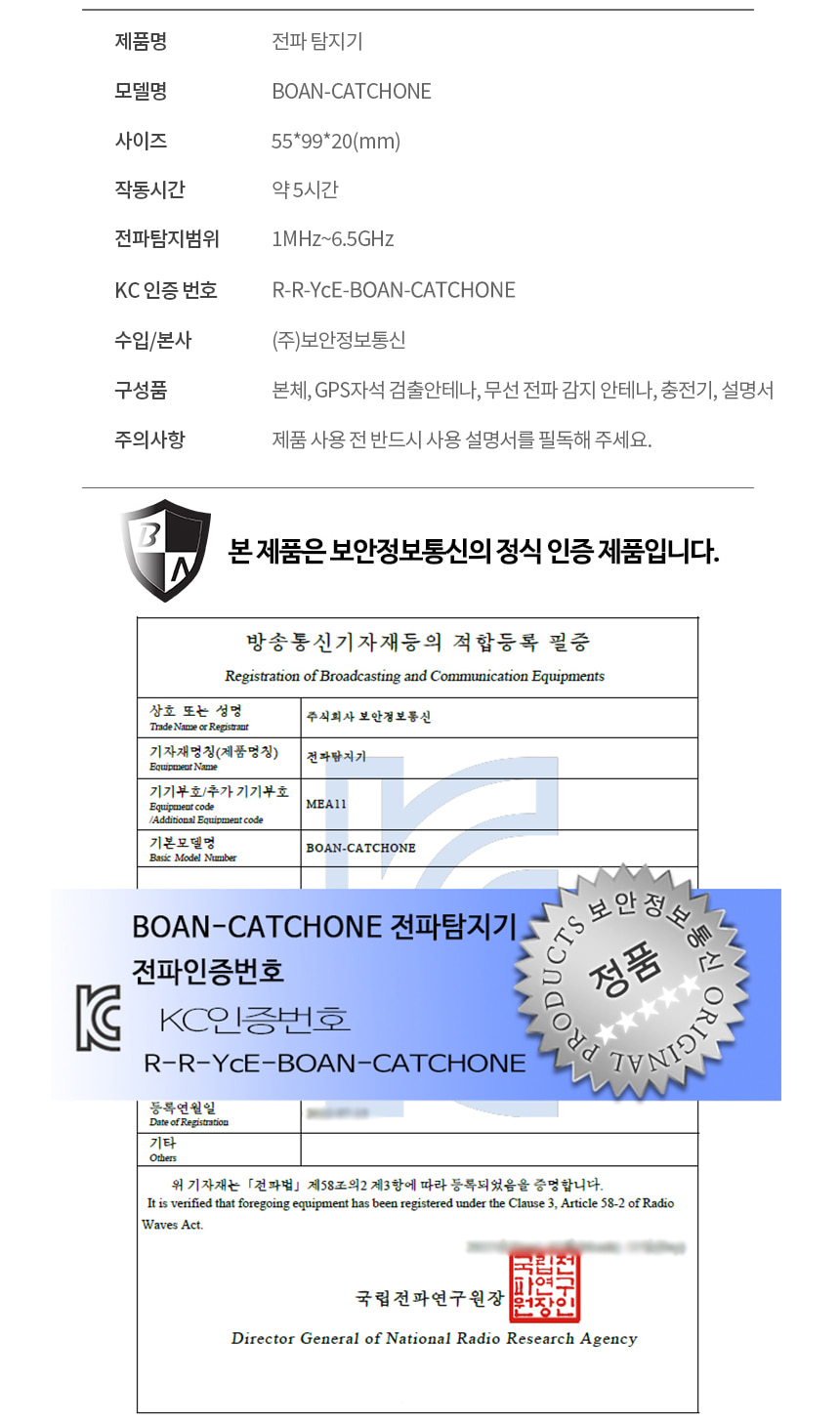 BOAN-TOP 캐치원 도청전파탐지기 숨겨진 몰래카메라탐지 차량위치추적기 탐지기능장착