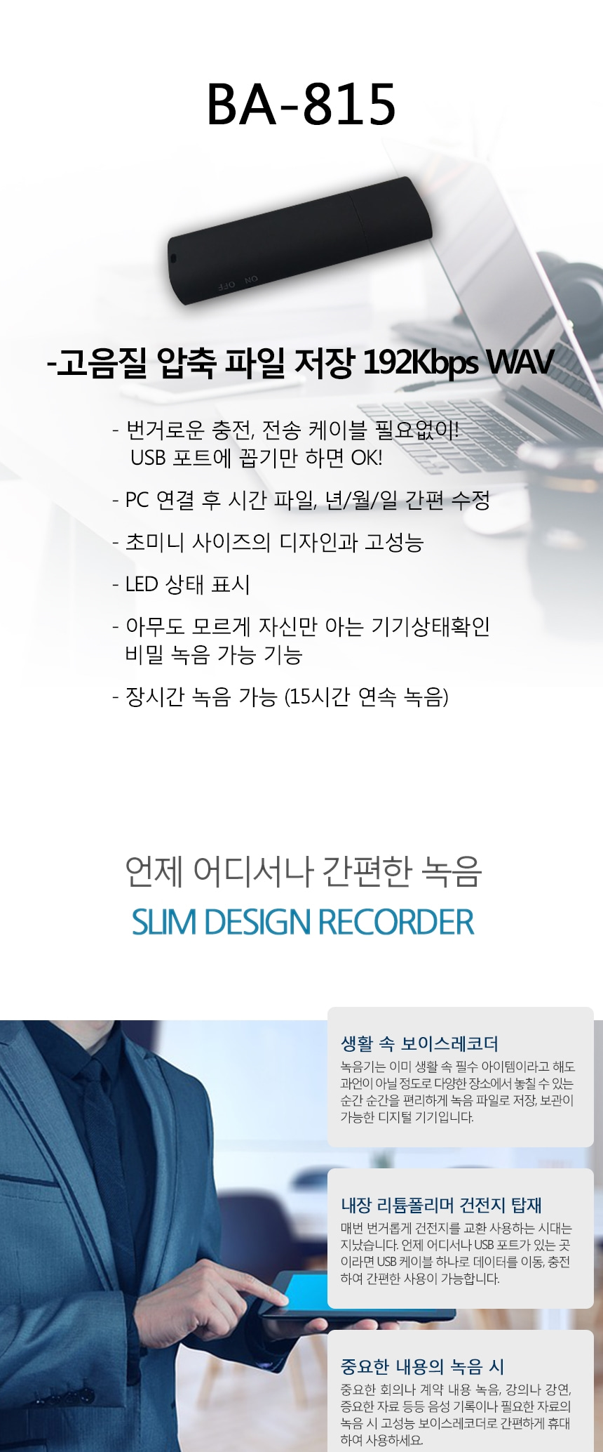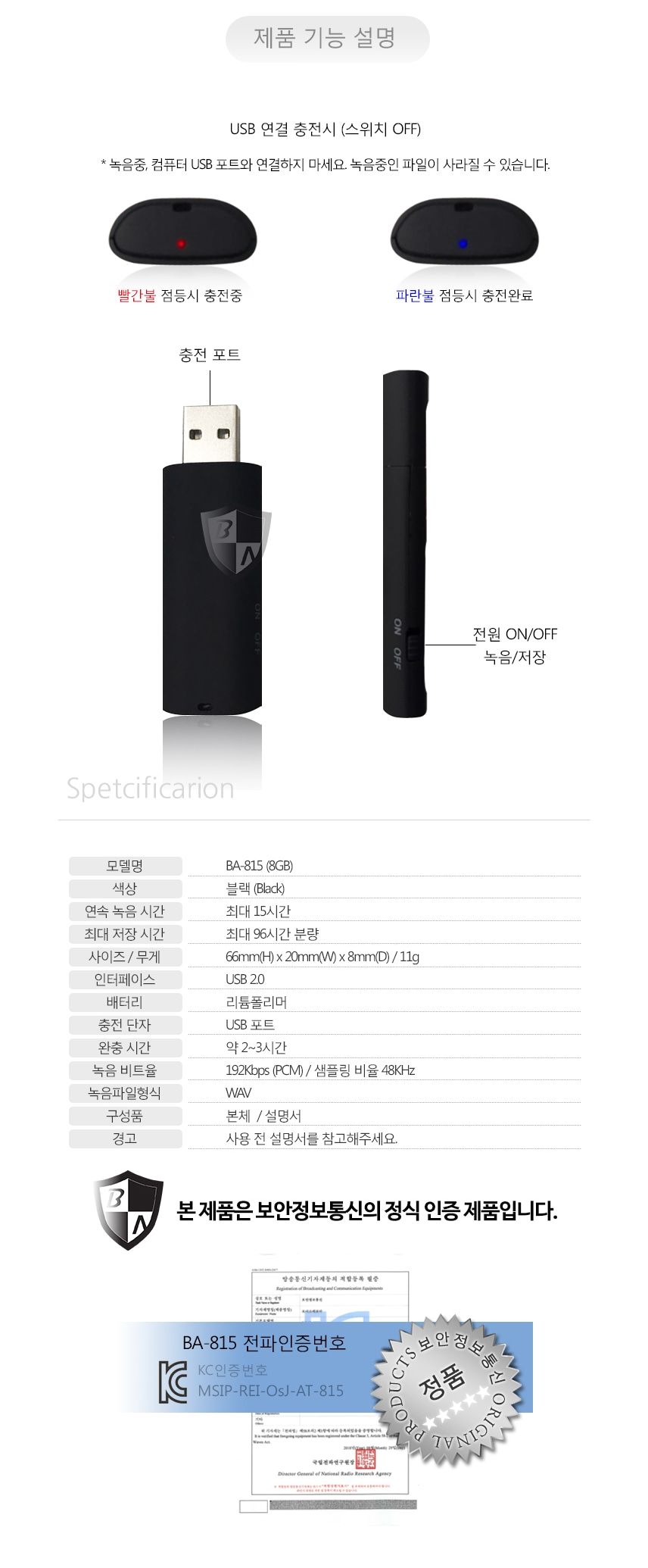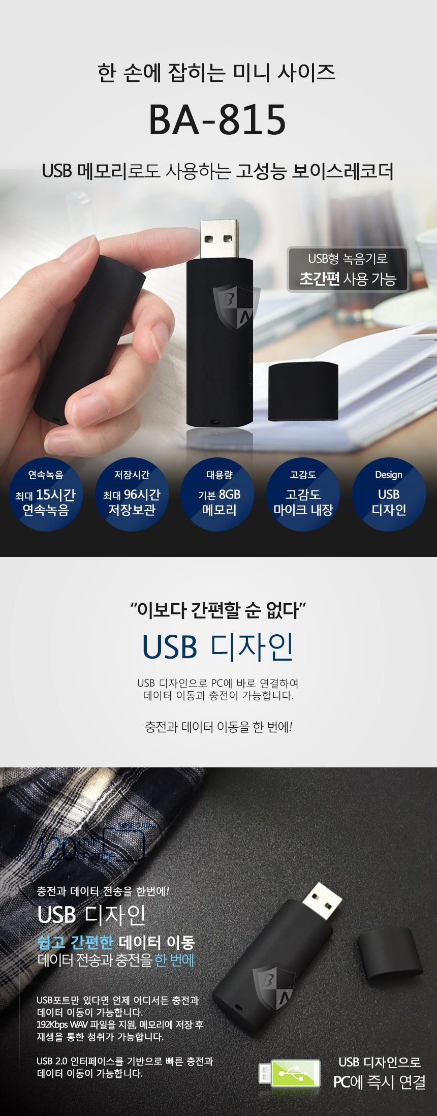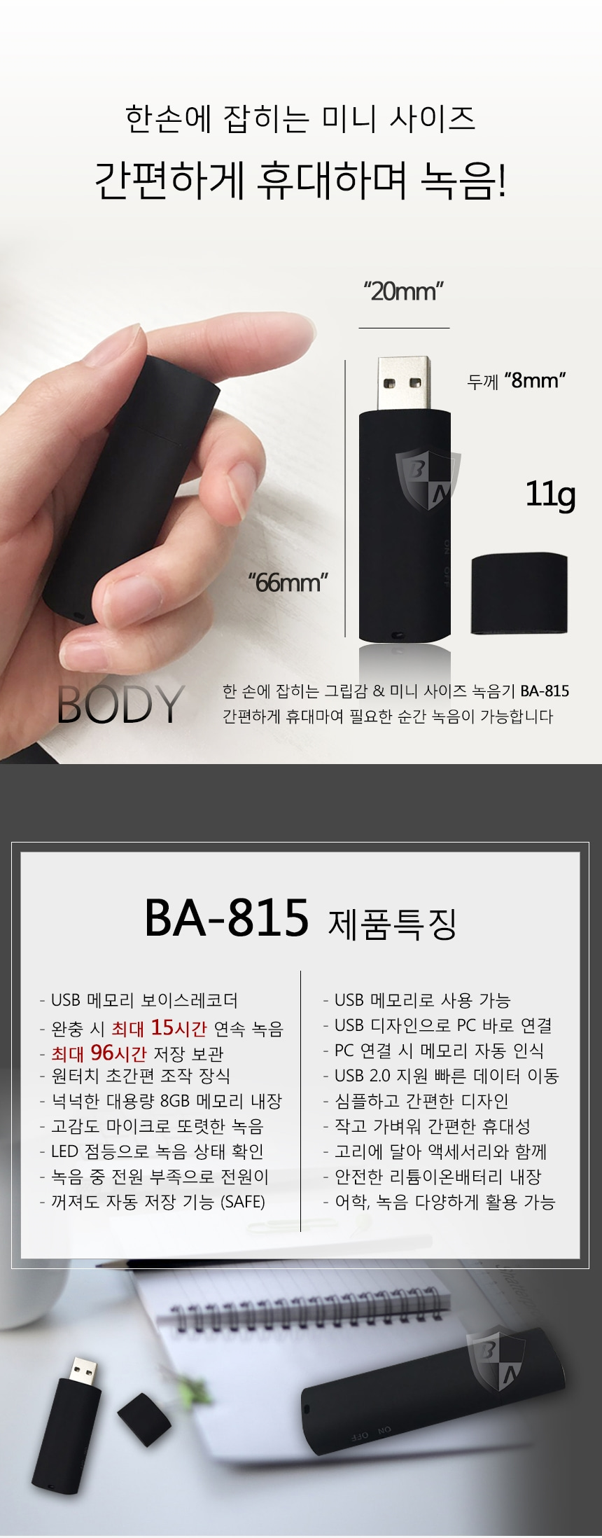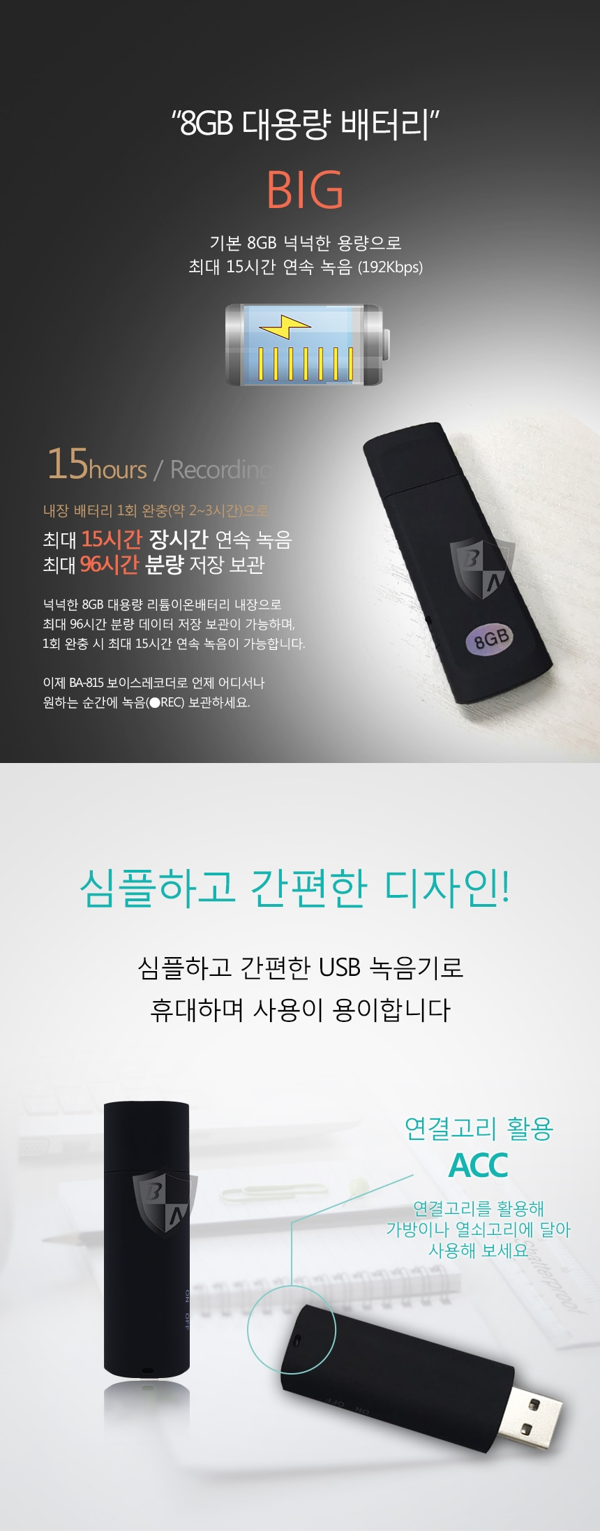 BA-815 USB녹음기 초소형미니녹음기 증거용 비밀녹취용