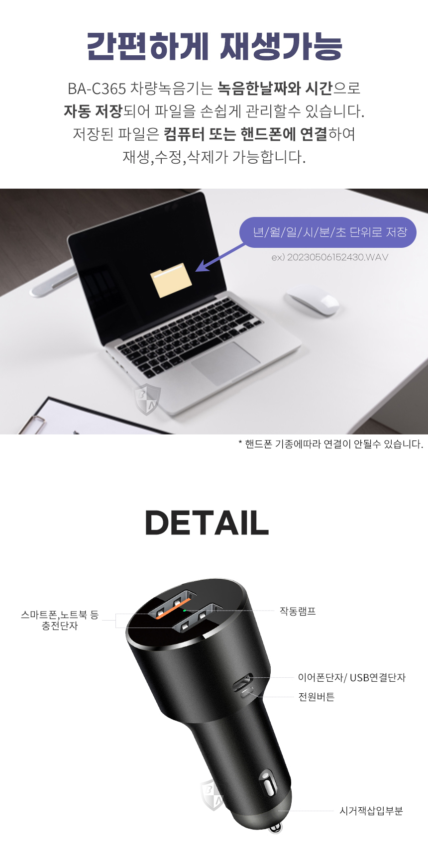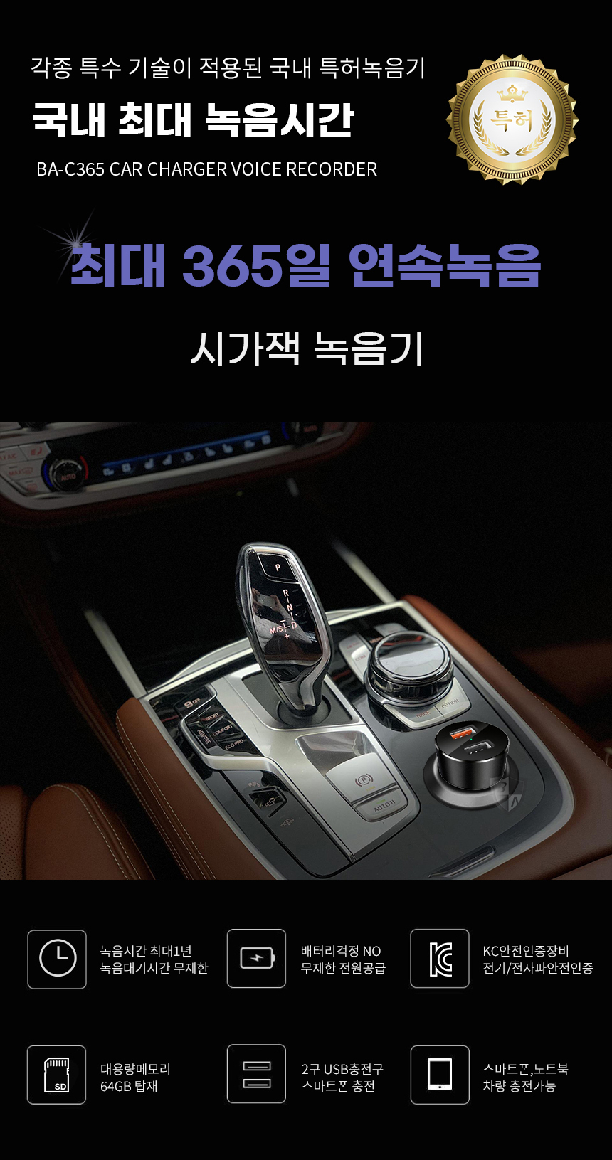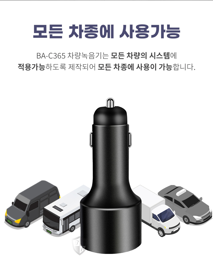 BA-C365 차량녹음기 최대1년녹음가능 대기시간무제한 차량시거잭 녹음기 초고음질마이크 장착