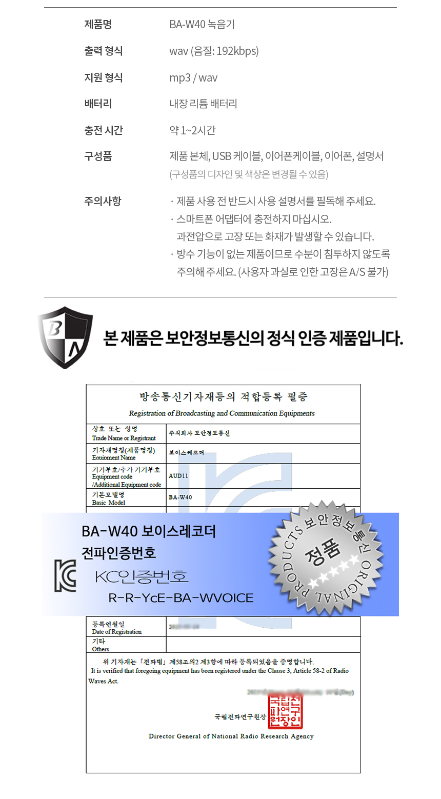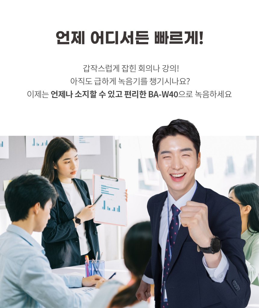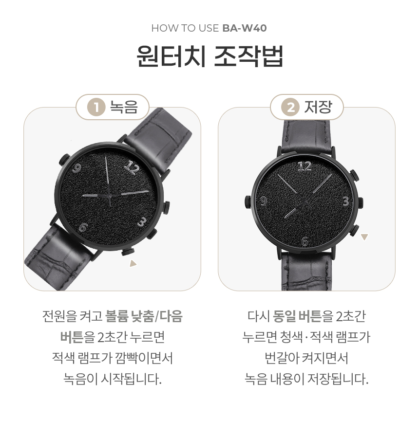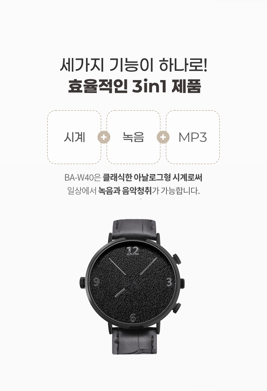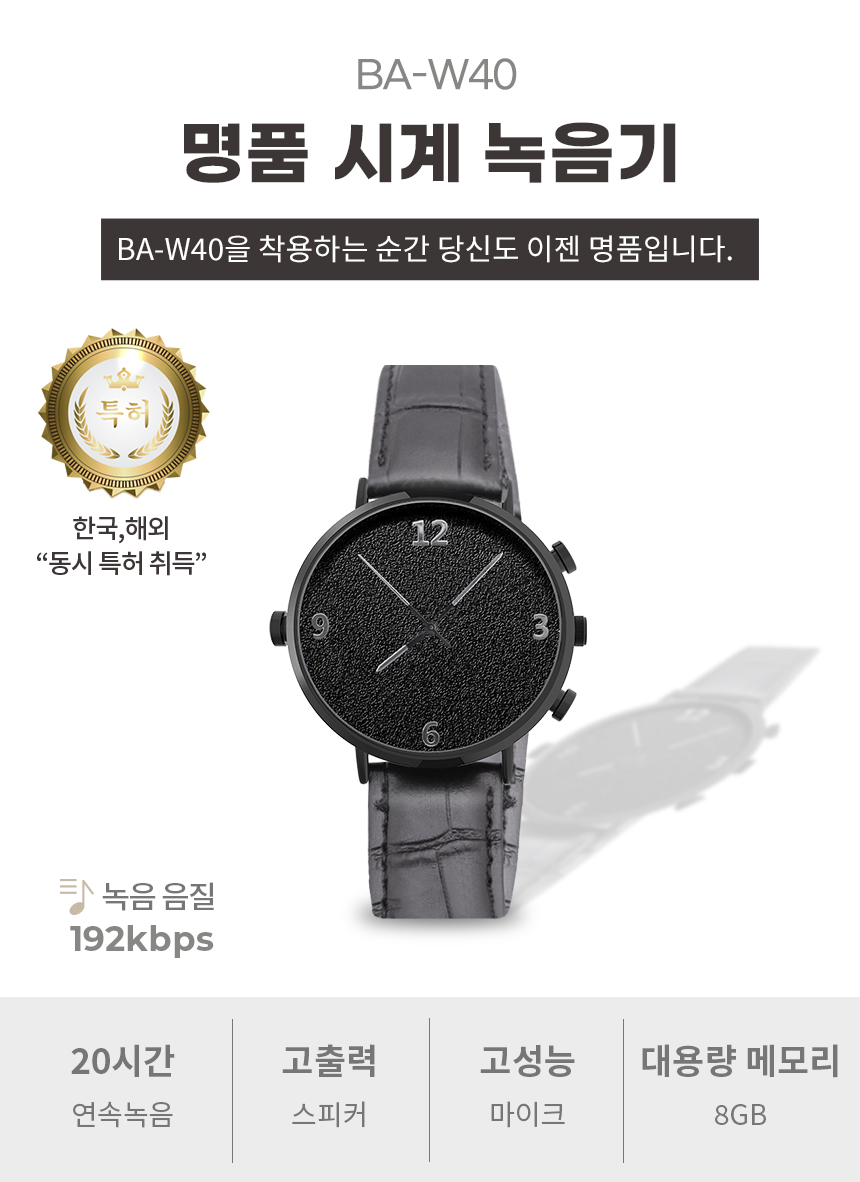 BA-W40 시계녹음기 20시간연속녹음 명품형 디자인 고성능마이크 고출력스피커 장착