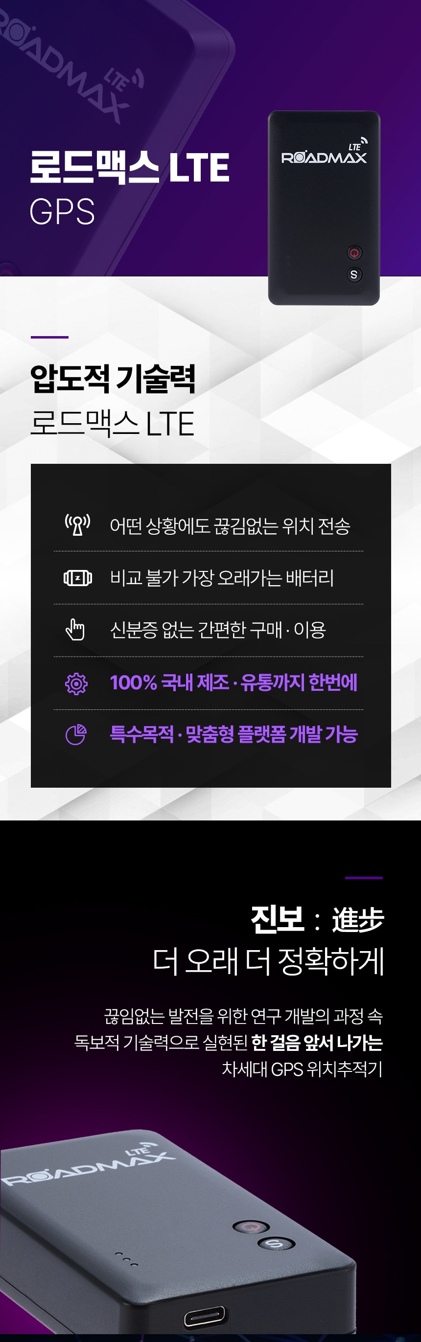 LTE 로드맥스 위치추적기 유니크S 배터리 사용시간 최대40일 초정밀 위치제공