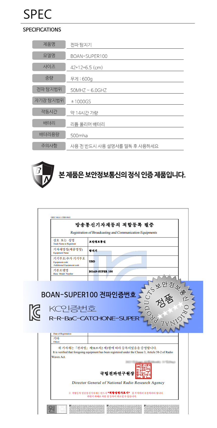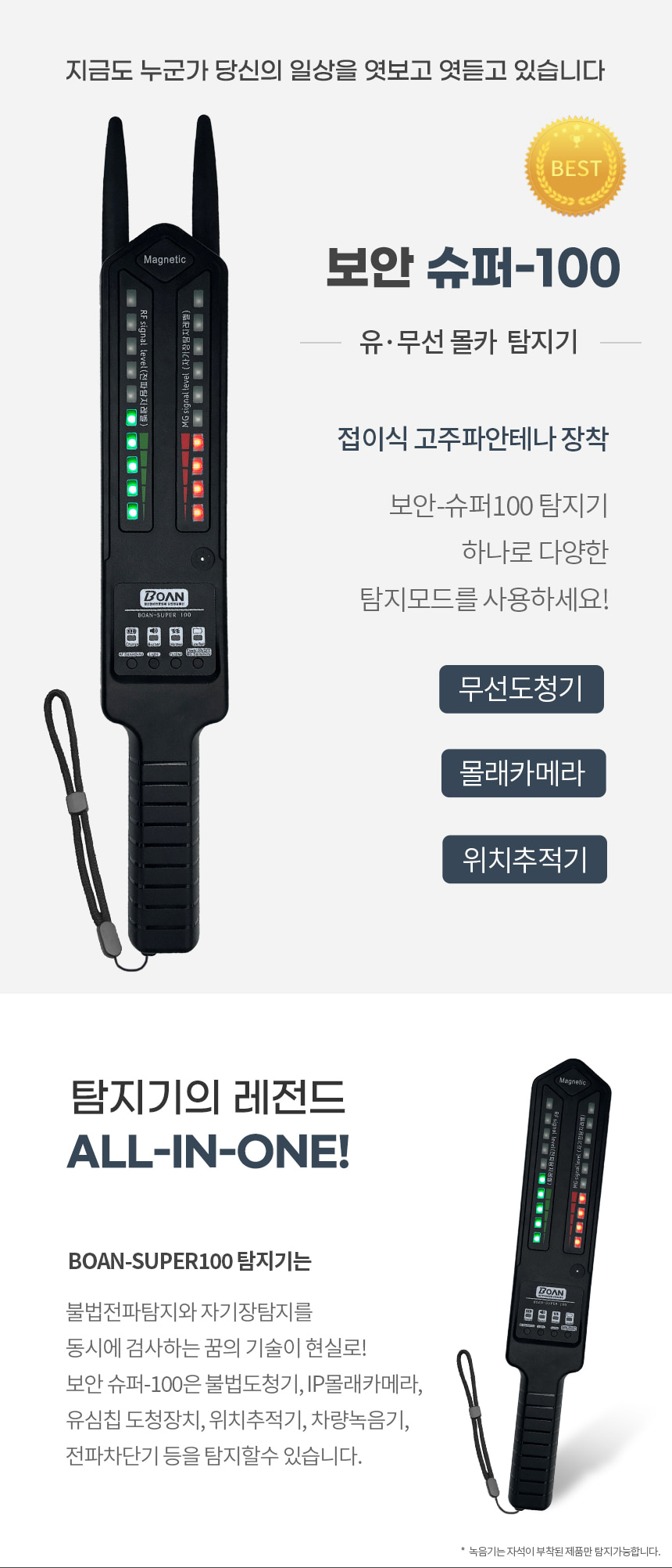 BOAN-슈퍼100 몰래카메라탐지기, 특수도청장비, GPS위치추적기, 초정밀 특수전파 탐지장비