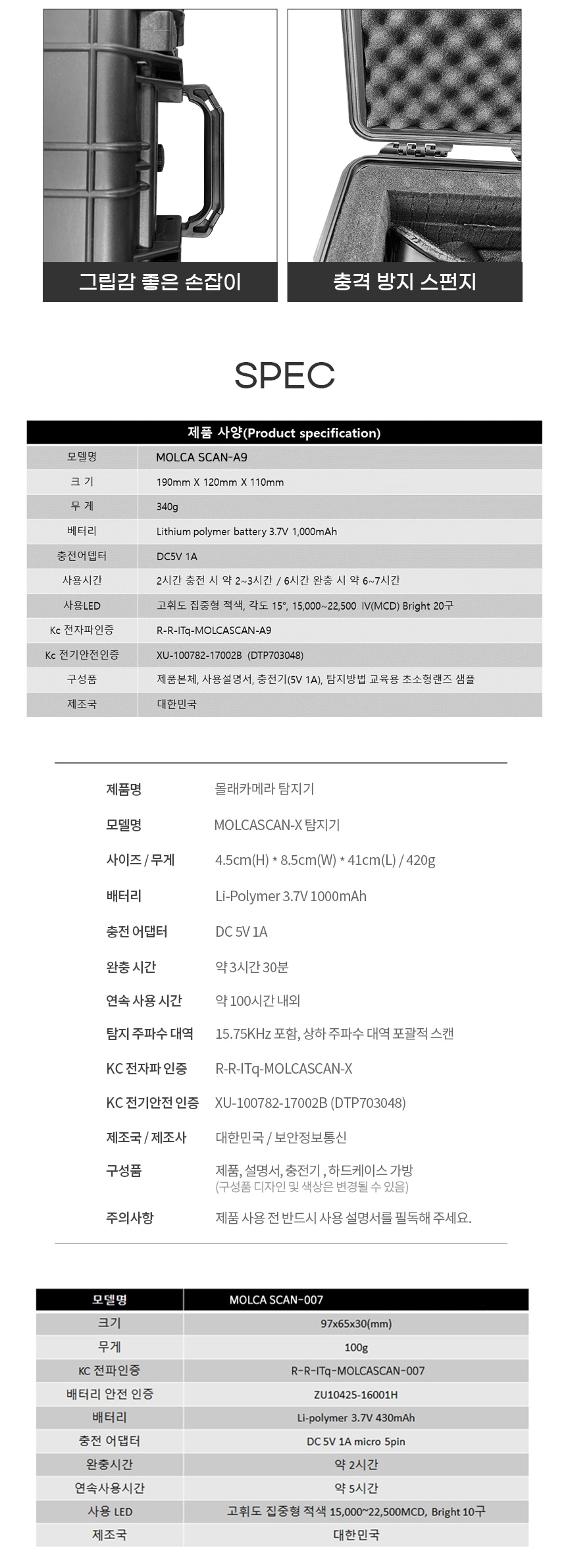 [몰카- 스캔 프리미엄] 전문 몰래카메라탐지기 도청탐지기 3종셋트 관공서, 학교,탐지업체등 전문납품장비 국내개발품